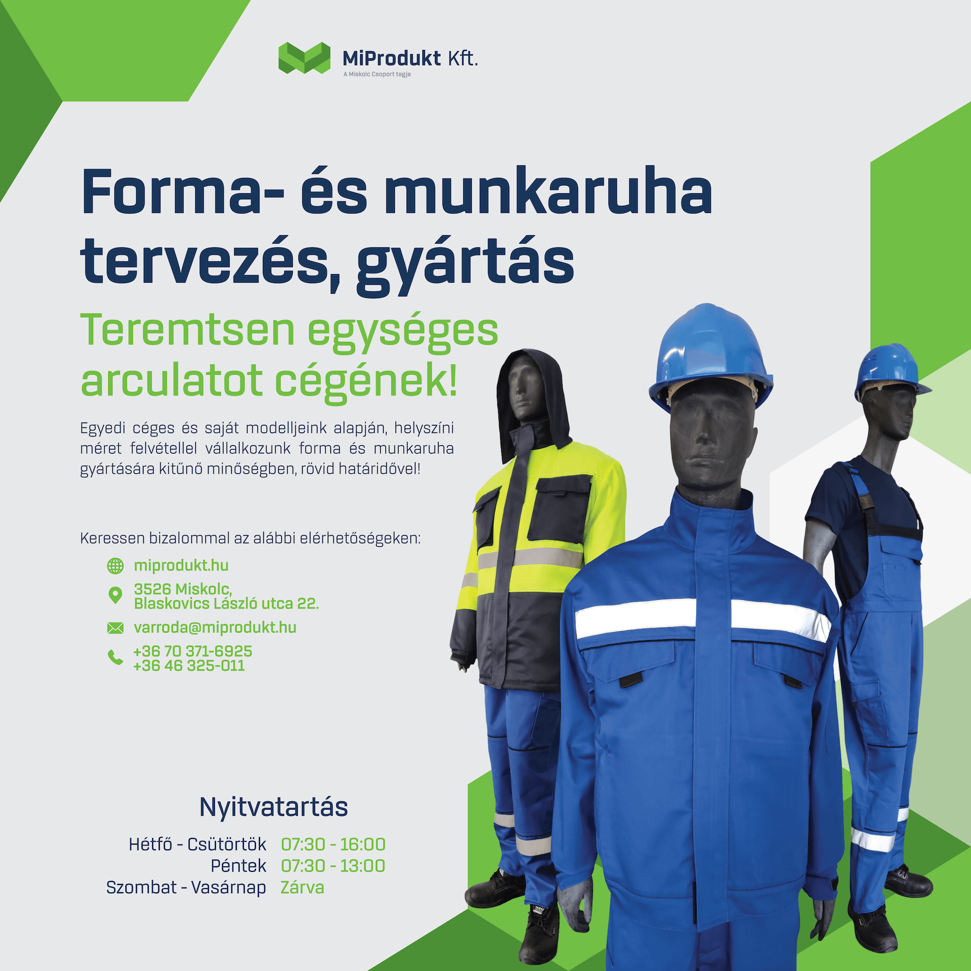 - Formaruha kollekciók: Olyan elegáns és praktikus formaruhák, amelyek segítenek a cégek egységes arculatának kialakításában.
